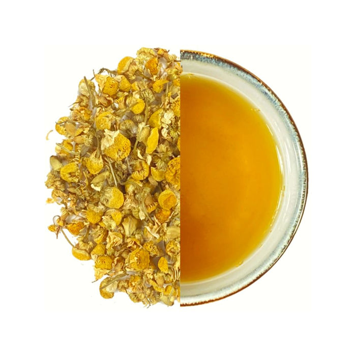 Calm down and destress with this relaxing and soothing whole chamomile flower. Chamomile has a gentle floral aroma that is very relaxing and is linked to calm down nerves, promote relaxation, relieve stress, and perhaps control insomnia. It may also help reduce skin inflammation or fight irritations and ease allergies.